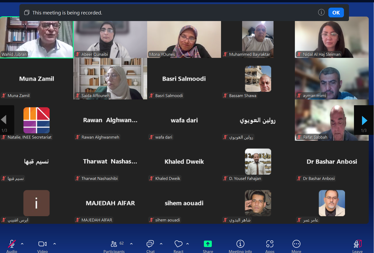 في هذا السياق، نظمت تعاونية التعليم في الطوارئ في إطار الائتلاف التربوي الفلسطيني وبالشراكة مع الشبكة المشتركة لوكالات التعليم في حالات الطوارئ (INEE) لقاءً تربويًا حواريًا عبر منصة زووم، بحضور نخبة من الخبراء التربويين، الأكاديميين، وصنّاع السياسات التعليمية، لمناقشة التحديات المرتبطة بتقليص التمويل وأهمية تعزيز صمود التعليم في فلسطين . تناول اللقاء واقع التعليم في فلسطين في ظل الأزمات، وآليات حماية المؤسسات التعليمية، وتطوير سياسات تمويل مستدامة لضمان استمرارية العملية التعليمية. كما شدد المشاركون على الحاجة إلى إعادة التفكير في نماذج التعليم والتخطيط الاستراتيجي للطوارئ، والتركيز على التعلم الرقمي والتكامل بين الجهود المحلية والدولية لضمان دعم الطلبة في بيئات غير مستقرة.