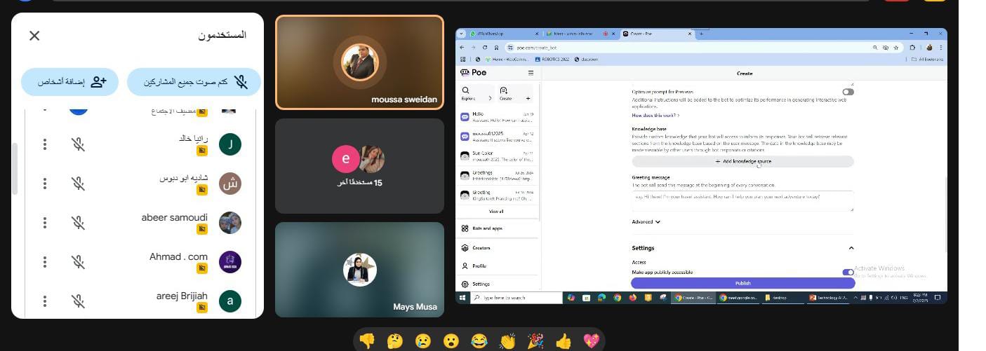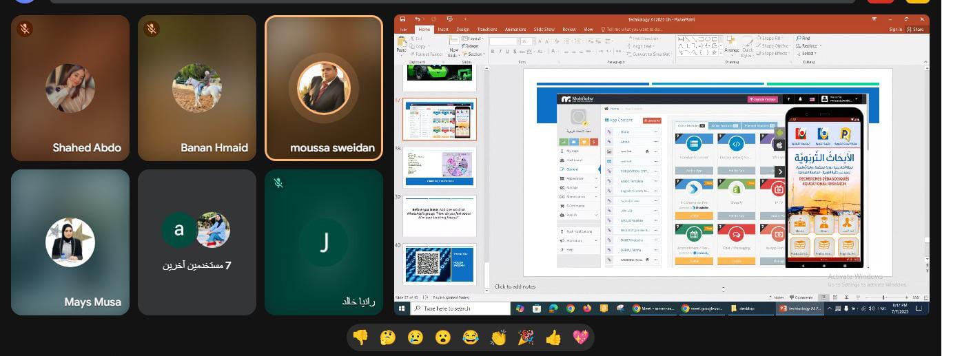 وقد عُقد اللقاء التدريبي الأخير عبر منصة Google Meet، وركز على تعزيز المهارات التطبيقية للمشاركين في توظيف الذكاء الاصطناعي لإنتاج محتوى تربوي هادف ومبتكر، يعكس روح التعليم البديل والتعلم المجتمعي.